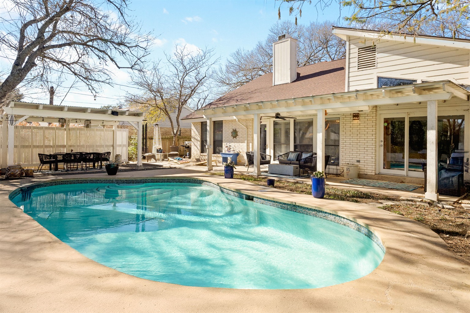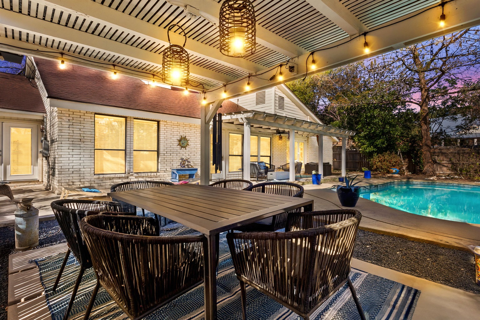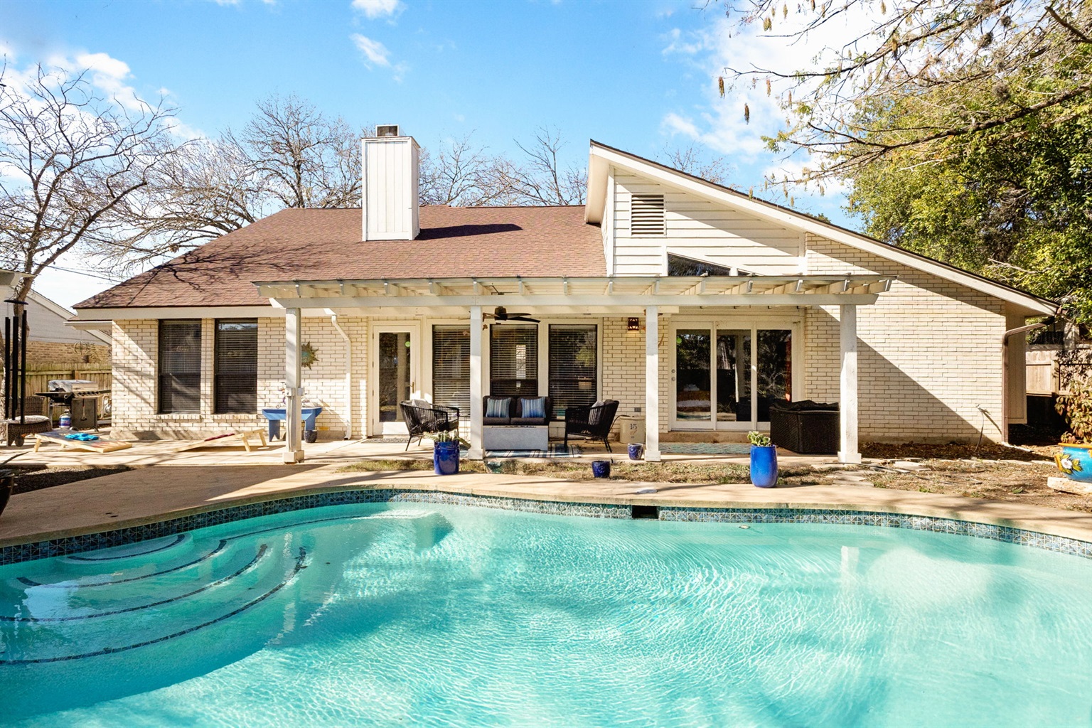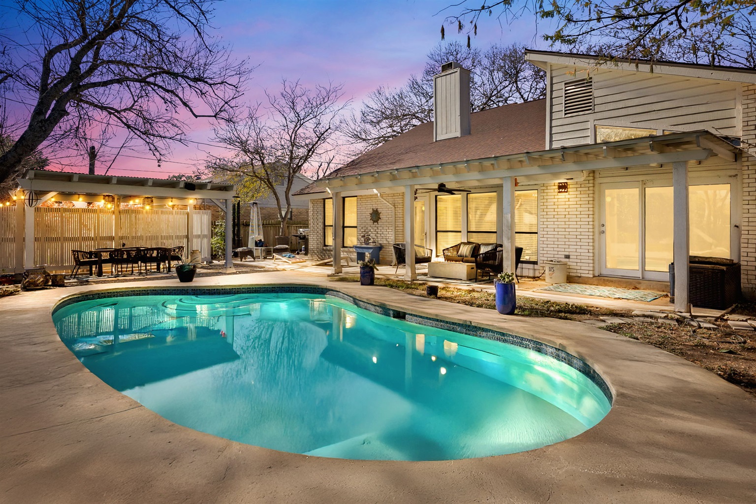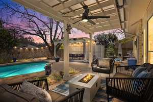 Bold Design Home with Private Pool & Game Lounge Game Lounge + Fire Table Retreat w/ Private Pool