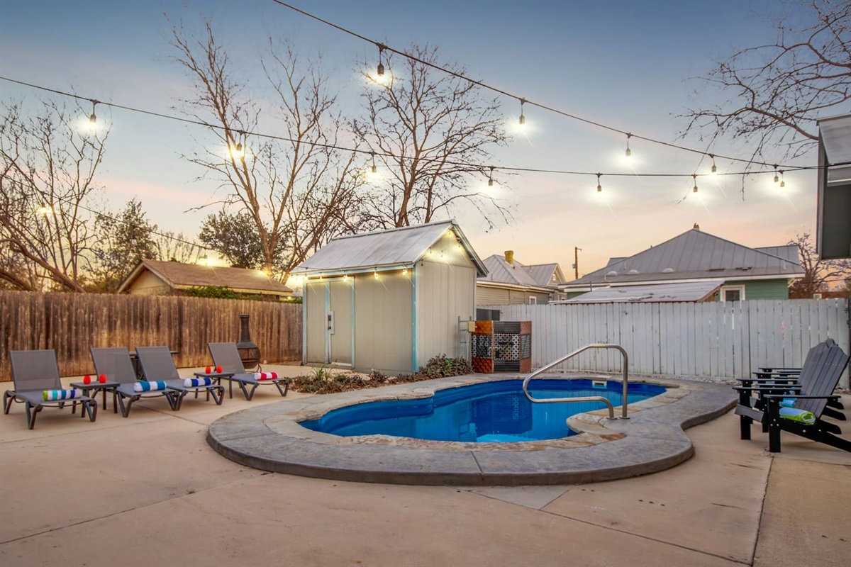 Lounge poolside in our spacious backyard, perfect for soaking up the sun or enjoying fun-filled moments with family and friends.