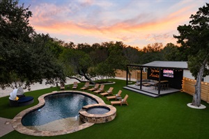 The property sleeps 25 comfortably, offering ample space for everyone to unwind without feeling crowded. Unwind in the covered gazebo, complete with an outdoor TV, bar, and ample seating for unforgettable al fresco dining. Soak up the sun by the stunning pool, or challenge your crew to fun yard games like shuffleboard, cornhole, disc golf, and mini-golf. Surrounded by lush greenery and a spacious layout, you’ll enjoy the ultimate blend of privacy and a resort-like atmosphere.