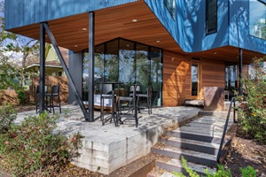 Outside you’ll find a fully fenced backyard for privacy and peace of mind, plus a gated parking area with plenty of free parking for several vehicles. The rooftop terrace — with a treehouse feel and views over Lady Bird Lake — offers a special spot for morning coffee, evening drinks, or simply unwinding under the sky.
