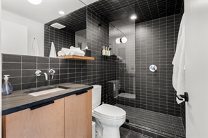 This home offers 3.5 bathrooms. Each is fully stocked with essential toiletries — body wash, shampoo, conditioner — plus fresh towels and necessary bath supplies, so you arrive and unpack without worry.