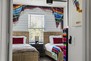 Mexico: Being a Mexican-American family, and Mexico being one of our favorite travel destinations, we put a lot of love into this room! The back wall has an incredible sarape (Mexican blanket) mural and other amazing decor from our travels. You will sleep amazingly on the queen-sized bed and enjoy the full-sized mirror and walk-in closet.